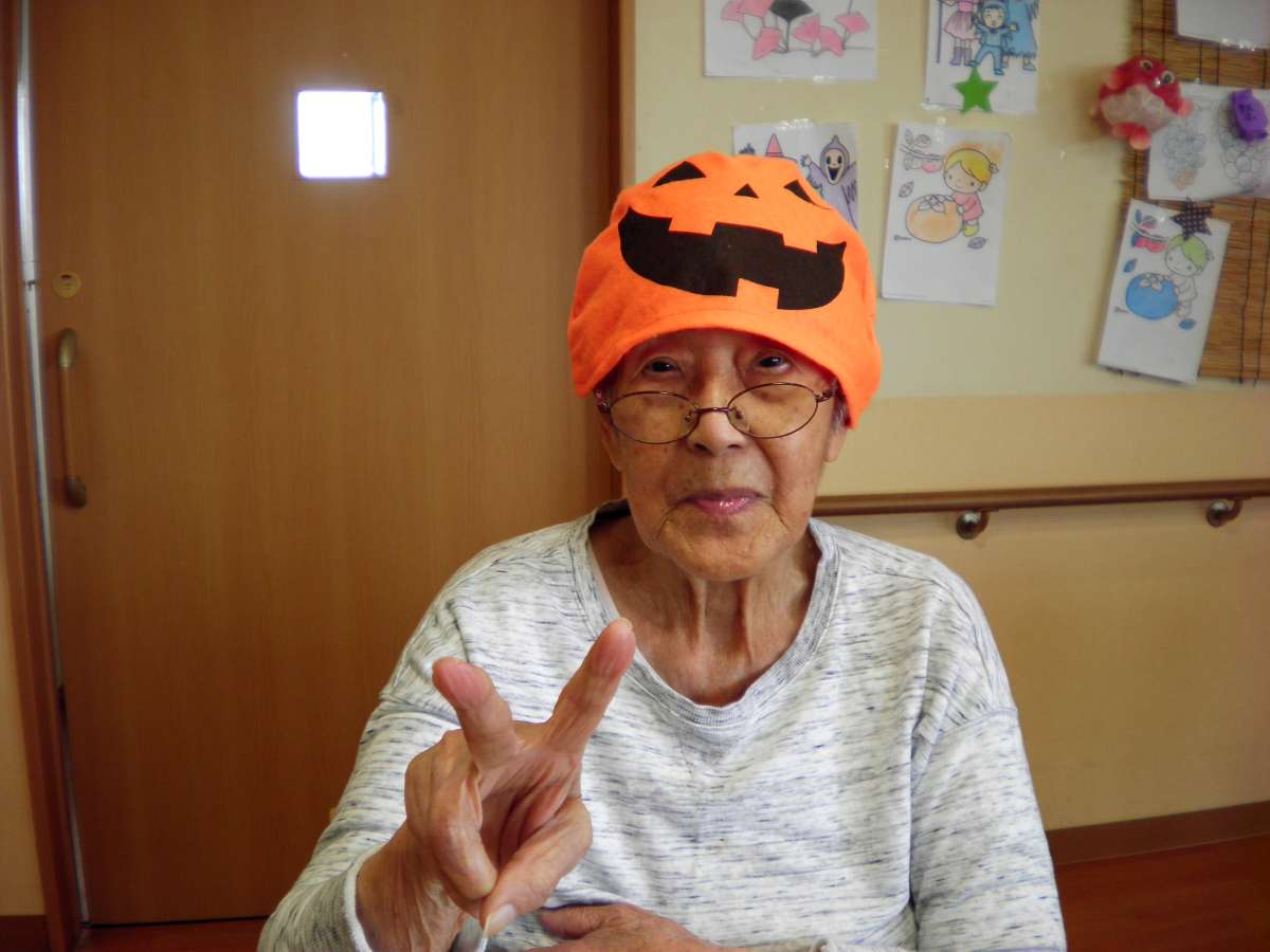 帽子をかぶって頂き、記念撮影。カメラ目線でピースまで。