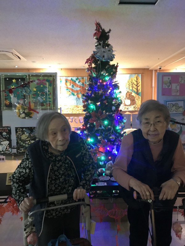 夕方になると照明を落として、クリスマスツリーがライトアップされるのでご利用者様に鑑賞して頂きました!
