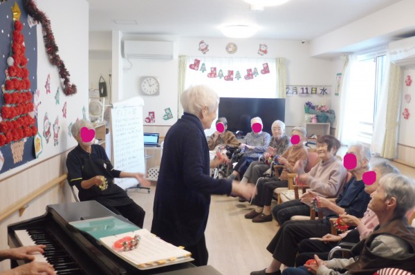 ピアノが得意なスタッフの伴奏に合わせて