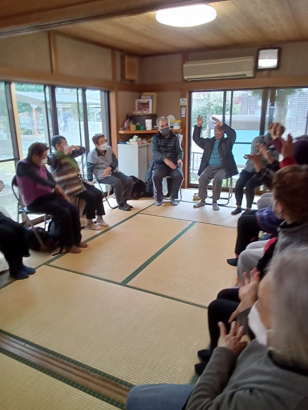今回も自己紹介から始まり、グループホームの職員による歌と合わせた体操、