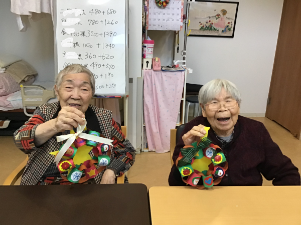 11月からこつこつ作っていただいたクリスマスリースも完成して、ご自宅で飾っていただけるように先週から少しずつお持ち帰りしていただいています。
