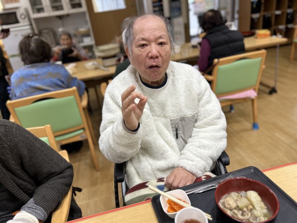 待っている間に、ご利用者様と一緒にデザートの柿を剥いて