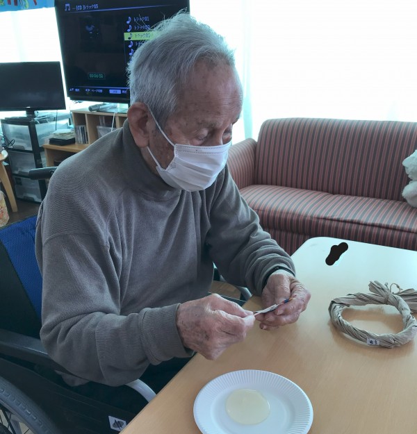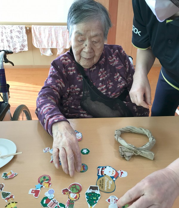 12月の工作レクとして、オリジナルリースをみんなでつくっております♪