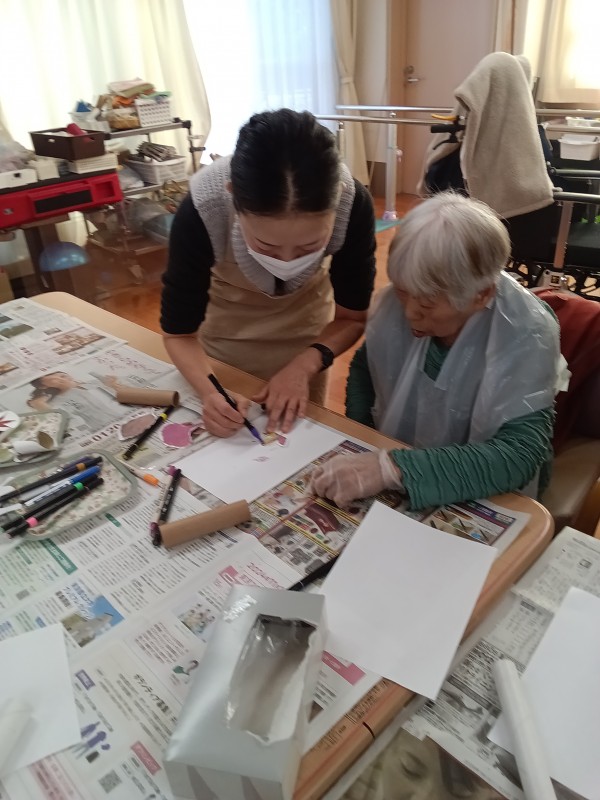 今日の午後は、お散歩はしないで皆で創作活動です。