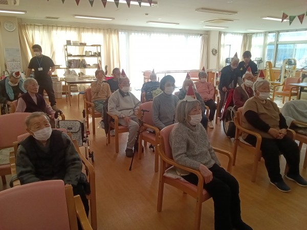 多くの利用者様たちが、クリスマス用のサンタクロースの帽子をかぶってくださいました。