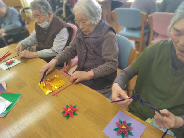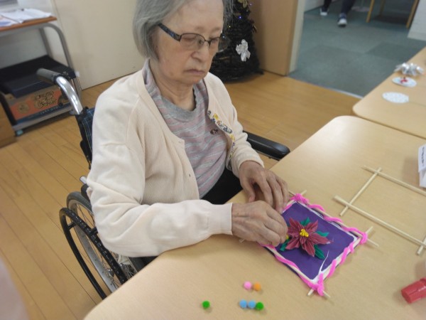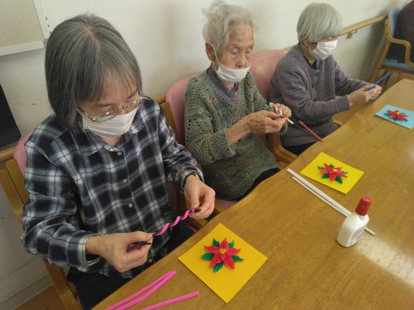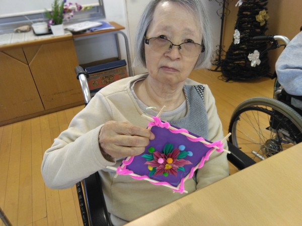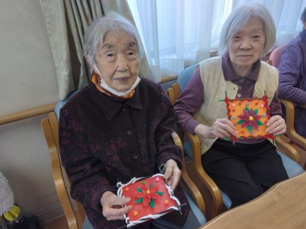皆様完成した作品をみて「あら綺麗!」「写真撮って」「素敵だわ」と満足なお声が聞こえた創作レクリエーションのお時間でした♪