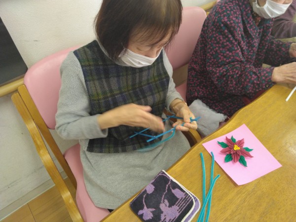 本日はポインセチアの壁飾りを皆様とご一緒に制作しました♪