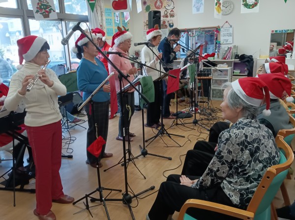 今日はグループホーム稲城長沼のクリスマス会で、演奏会に参加させていただきました~