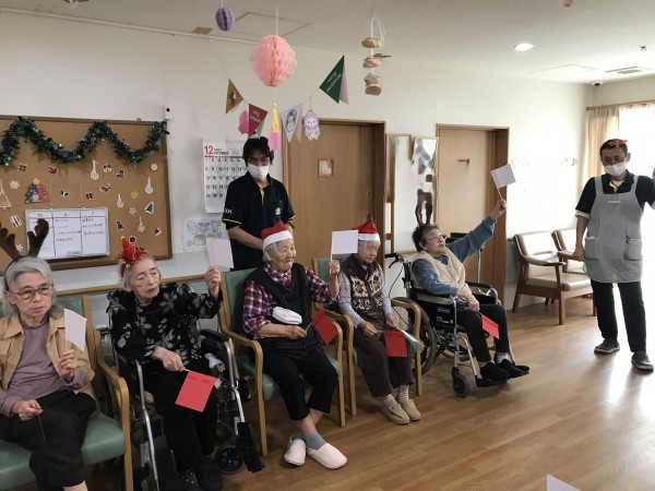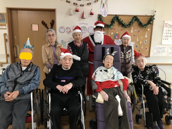 入居者の皆様もサンタやトナカイの飾りを身にまとい、華やかです(*'ω'*)