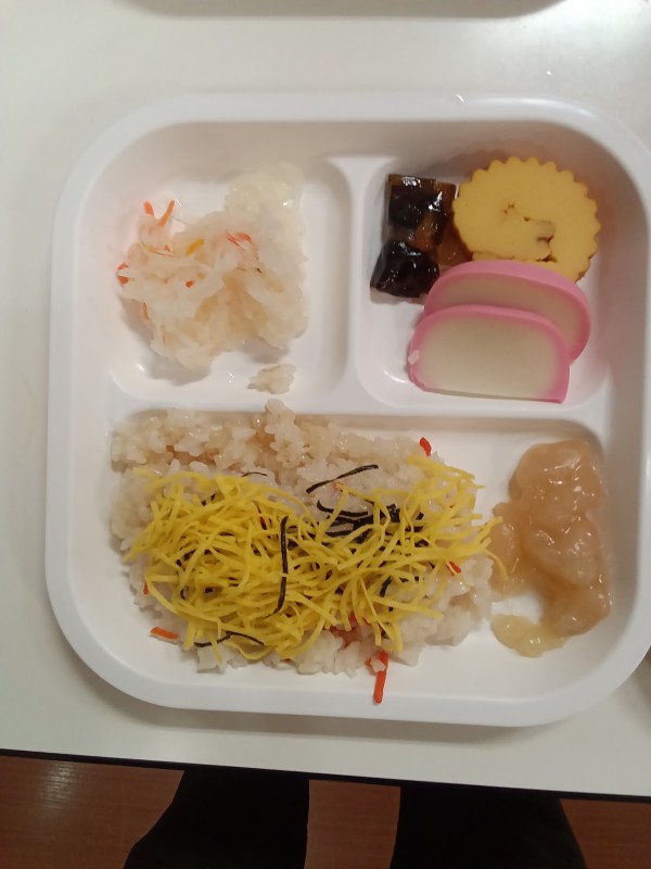 この日の昼食は元旦ということもあり、ちらし寿司でございました