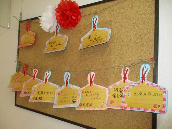 新しい年を迎えて、旧年中に準備したお正月の装飾品が、ご面会に来られたご家族様にもお披露目されました。