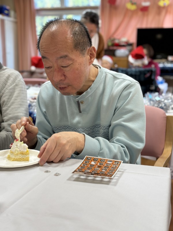 最後はビンゴ大会も落ち着いたところでティータイム。ケーキをいただきました!