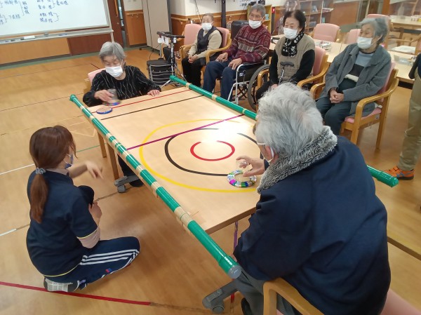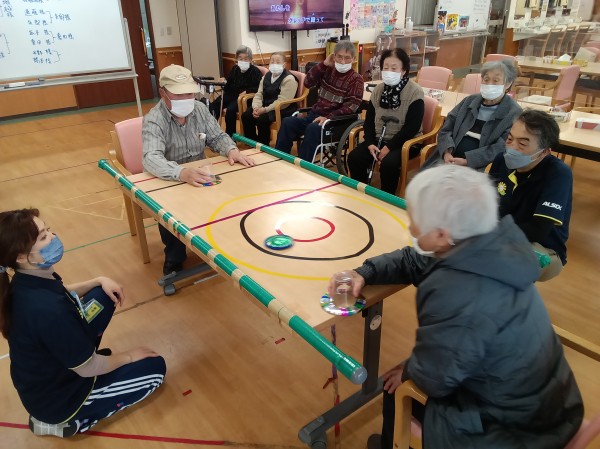 今日のレクリエーションは、エアーホッケーでした。