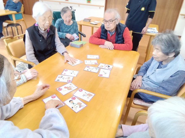 こんにちは! グループホームみんなの家・あきがせの介護ブログです! よろしくお願いいたします! 今日はお正月・カルタ遊びを行いました。そのご様子をお知らせいたします。