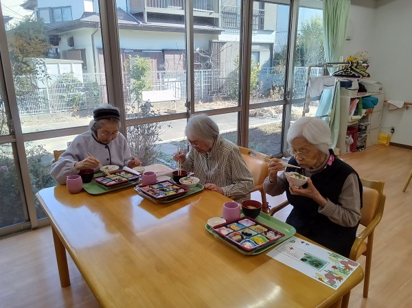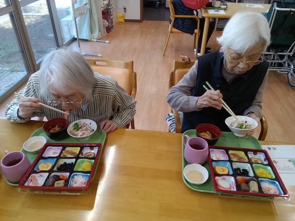 こんにちは! グループホームみんなの家・あきがせの介護ブログです! よろしくお願いいたします! 今日は1月1日・お正月! おせち料理を召し上がられました。そのご様子をお知らせいたします。