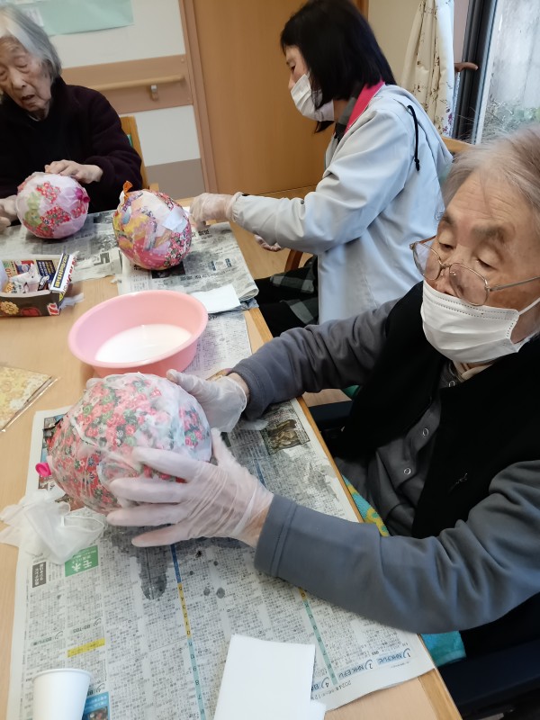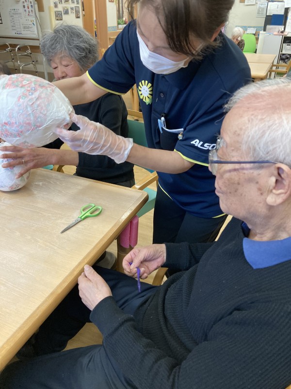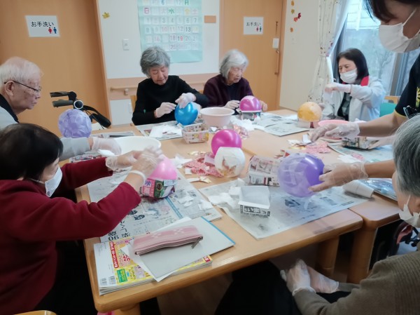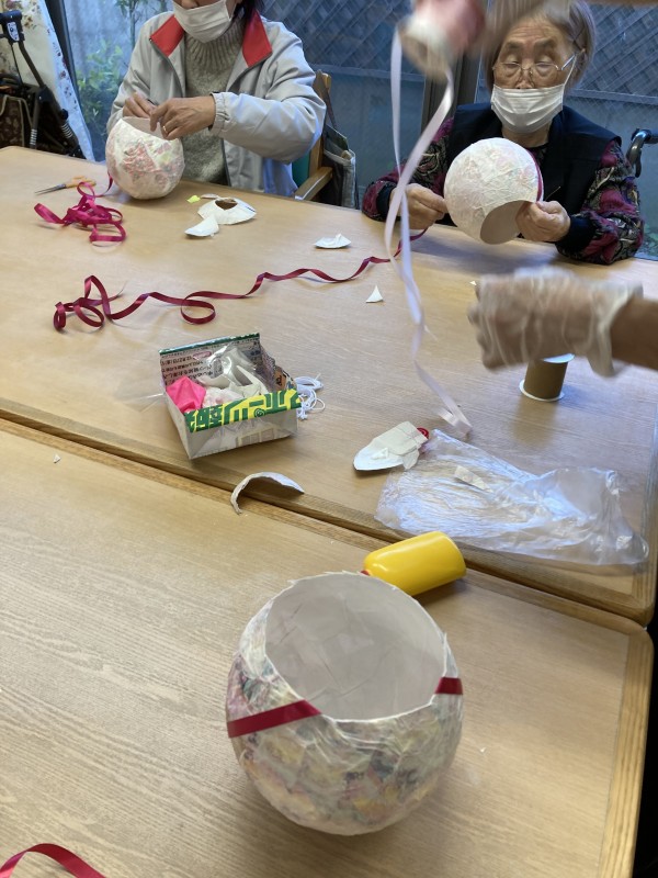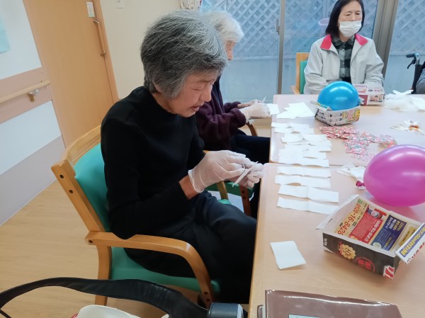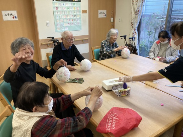 さて、今日は楽しい作業レク、「風船ボール作り」に挑戦しました!
