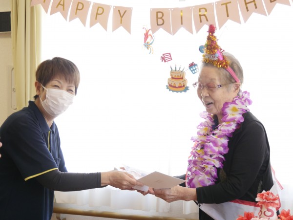 ホームでもささやかながら、お誕生日会を開催♪