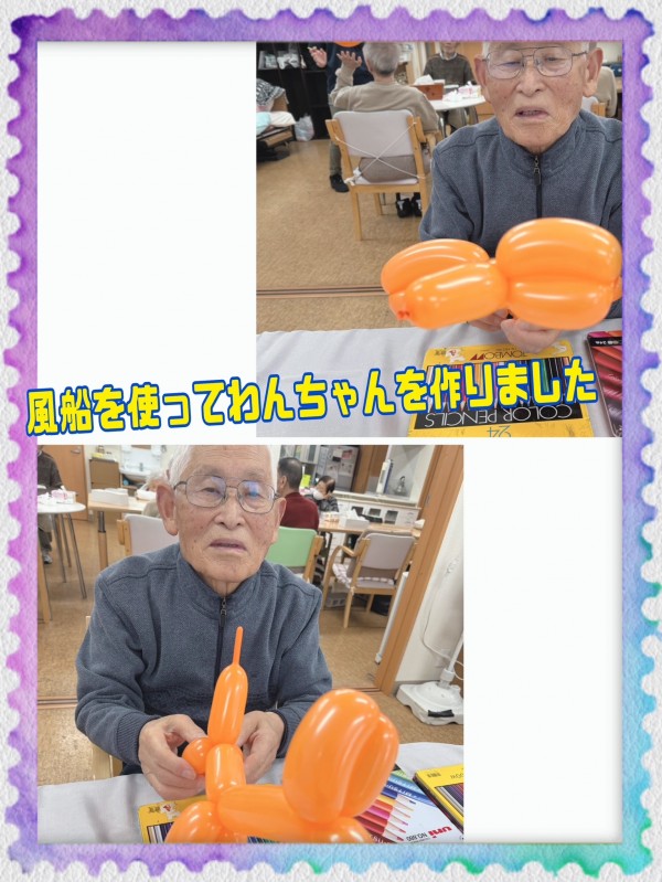 こちらでは長い風船を使ってワンちゃんを作りました♪