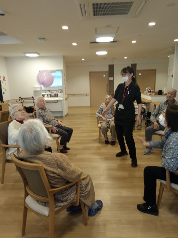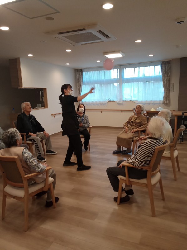 今日は、ご入居者様からのリクエストで風船バレーを行いました。