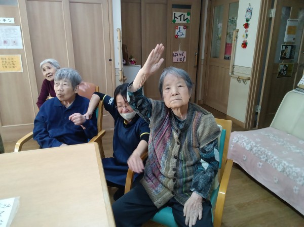 職員もご利用者様の声かけ、介助しながら一緒に参加してます。
