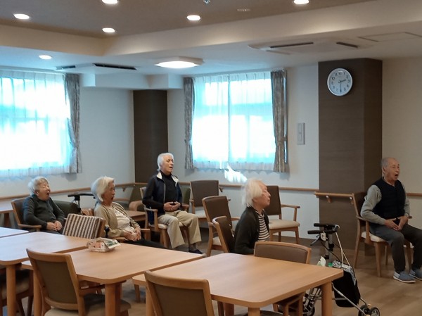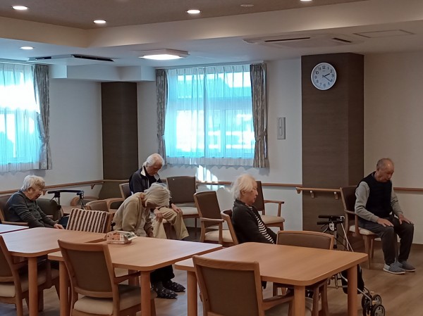 ご入居様と一緒に職員も一生懸命体操を行いました。