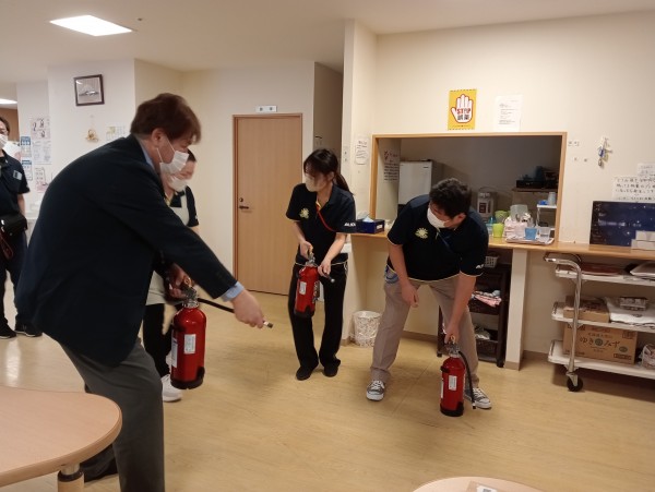 今回は厨房より出火を想定し、全スタッフにて初期消火、通報、避難誘導を円滑に行うことを目的に実施いたしました。