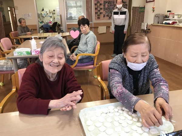 1月はお二人様がお誕生日でした~おめでとうございます!また鏡開きではおしるこを作って食べました~餅はちょっと怖いので白玉粉で白玉しるこを作っていただきました~。