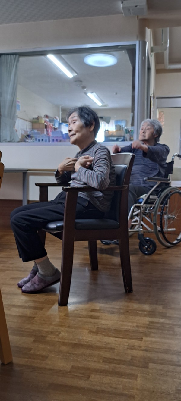皆様でクリスマスの歌を歌いながら体を大きく動かしていき、「体操が好きですよ。体操は体に良いですよ」と楽しそうに仰られました。