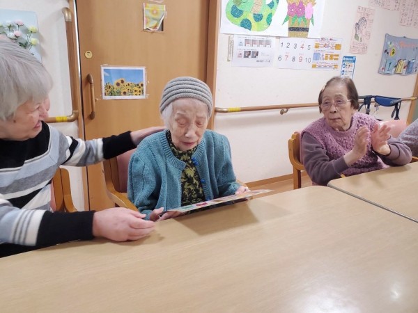 今回のお誕生日会には訪問マッサージシニアセラピーの先生も一緒に参加してくださり、一緒にお祝いをしてくださりました。
