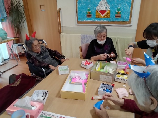 カラフルな『ツノ』や『恵方巻』が少しづつ形になり