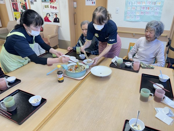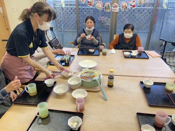 野菜たっぷりの具材と、柚子の香りが漂うお出汁が絶妙で、「これなら何杯でもいけちゃう!」と利用者さんたちに大人気。