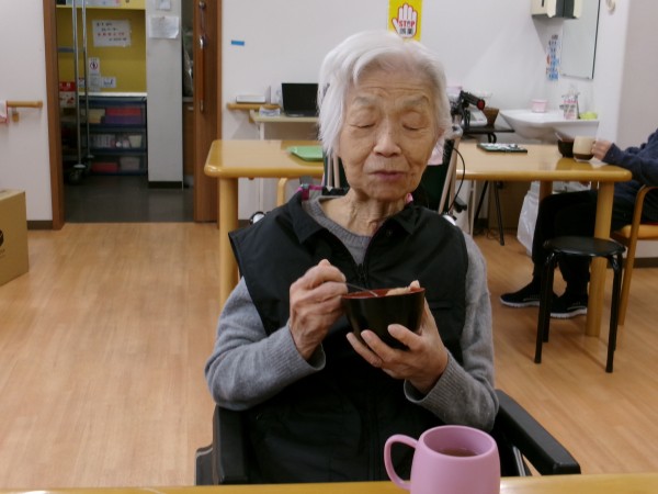 鏡開きにお汁粉を作り召し上がっていただきました。美味しいわ!美味しい!と召し上がって下さいました(*^_^*) 食べ物って健康そのものですね(笑)