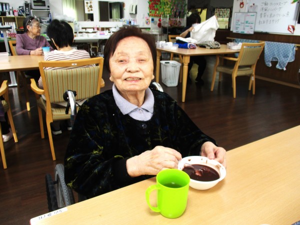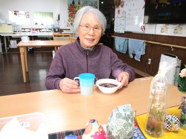 みんなの家与野公園、年初めのお楽しみ、職員さんたち手作りのお汁粉の日です。