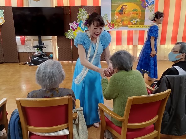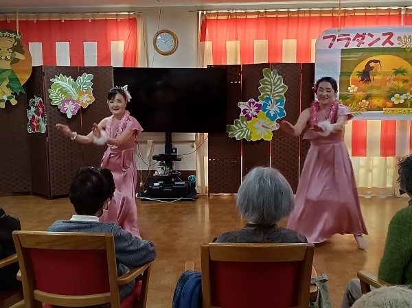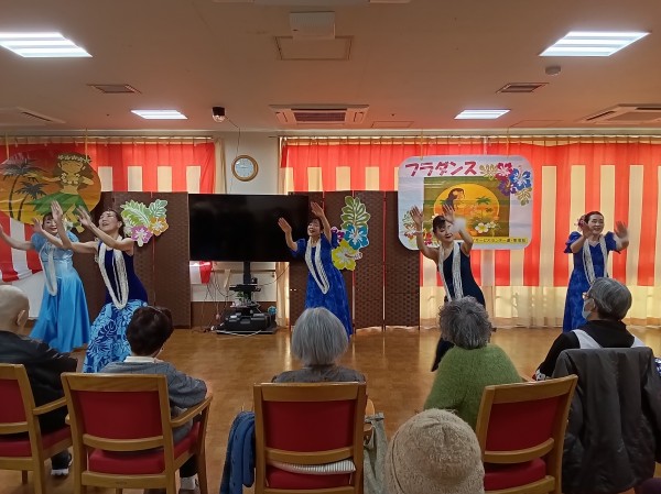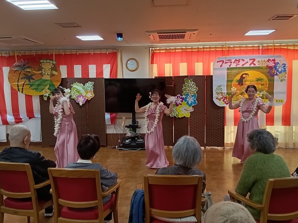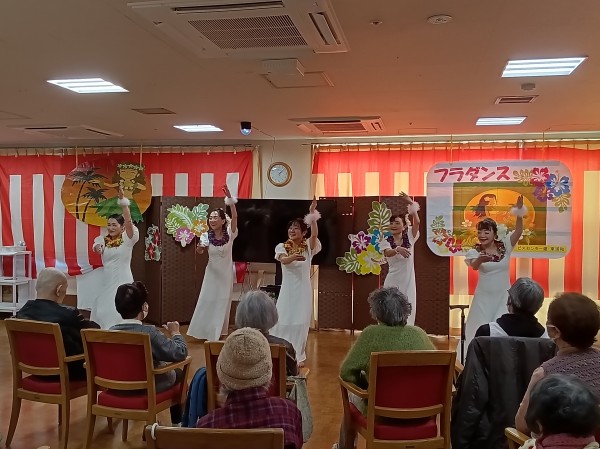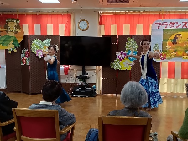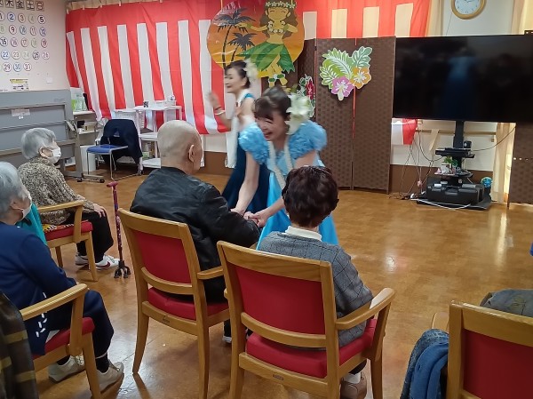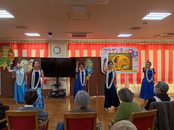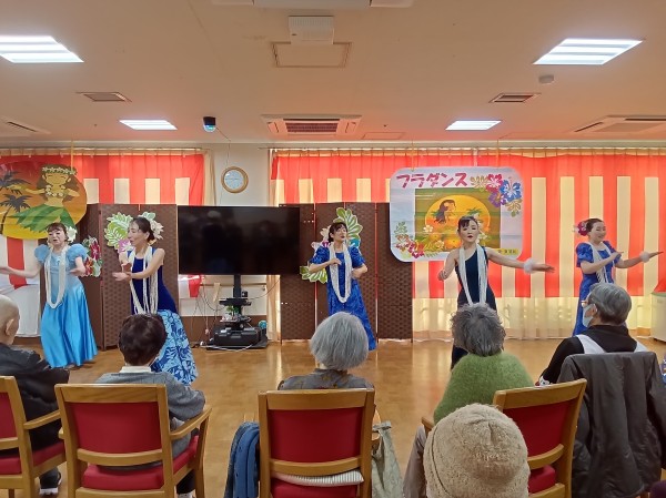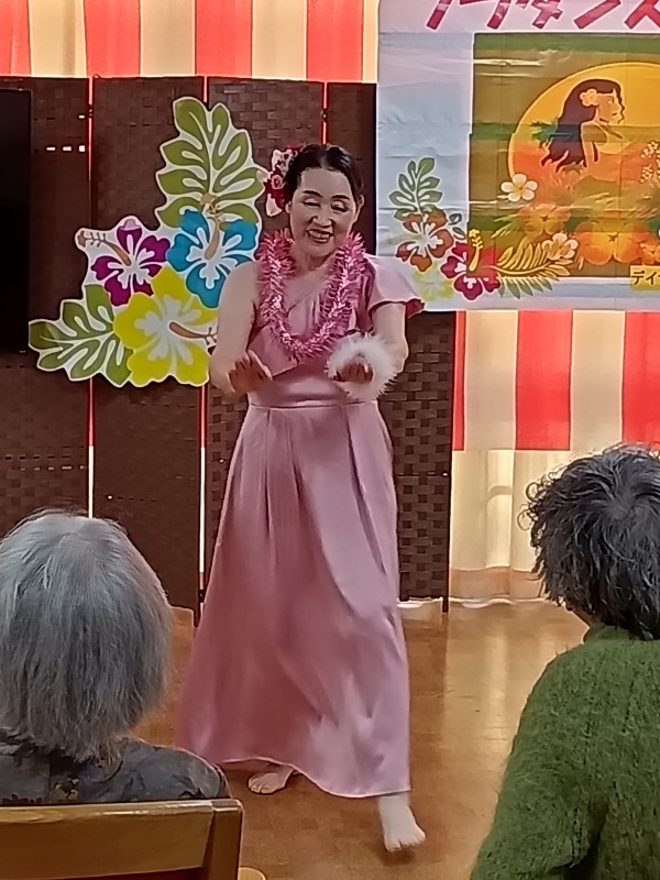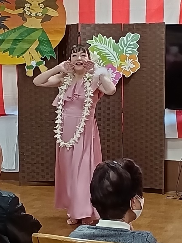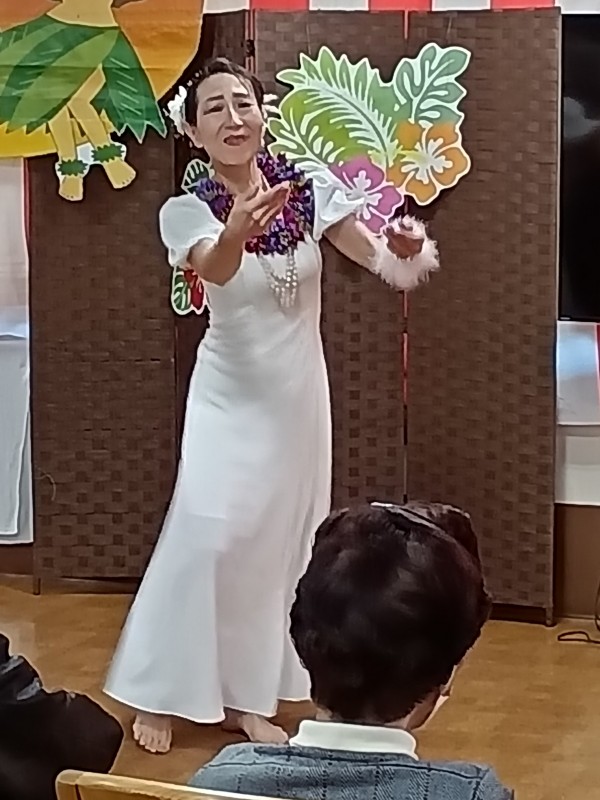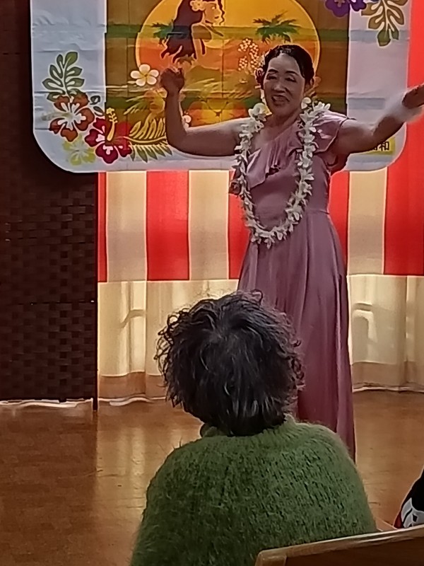 「瀬戸の花嫁」や「亜麻色の髪の乙女」等、馴染みの深い曲からハワイの曲まで、さまざまな音楽に合わせてダンスを披露して下さいました。