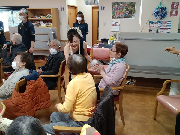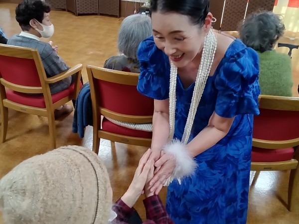 最後は全員がご利用者様お一人お一人に握手して退場して下さいました。この演出にはご利用者様も大喜び!