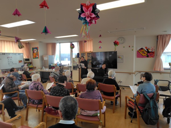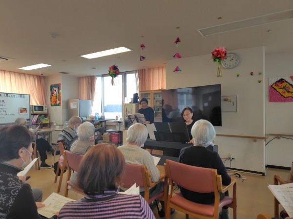 バラが咲いたでは歌詞カードを見ながら皆で合唱!皆様喜んでくださいました!