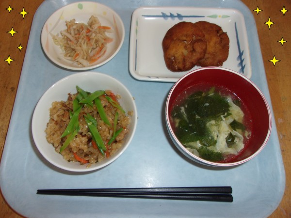 メニューは職員お手製の「ゼリーフライ&中華おこわ」です(*´ω`*)フフフ