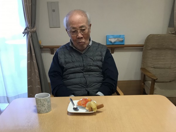 最近では、トーストにリンゴを煮たものを乗せて、フルーツ缶を使ったゼリーとともにお出ししたり、焼きおにぎりを作って召し上がりました♪