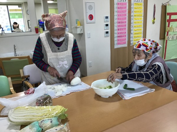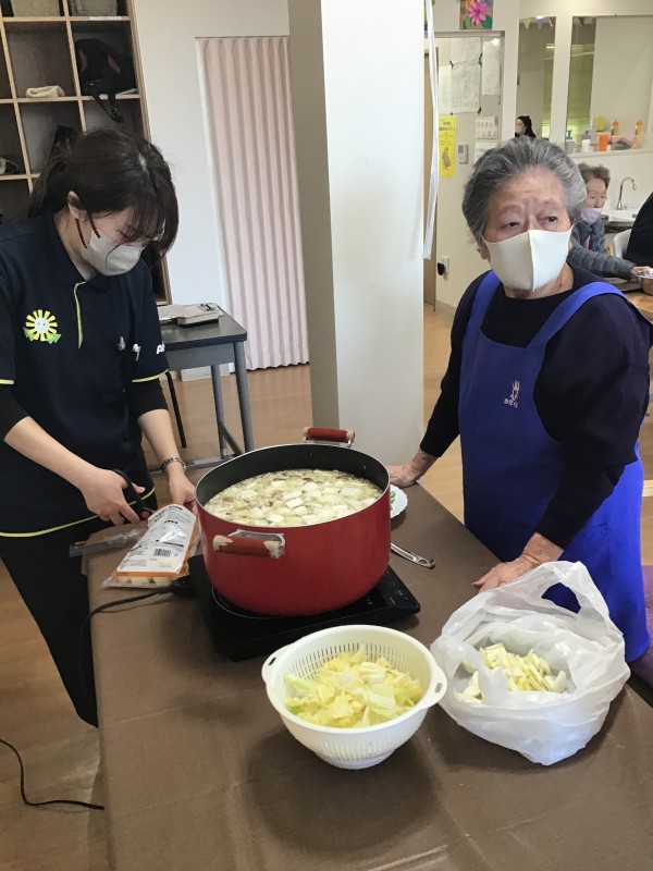 お汁粉作りの次は、豚汁作りを