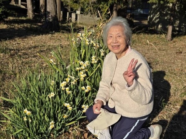 外に出ると、「ちょっと寒いけど、とてもいいお天気で気持ちがいいわね」「やっぱり外はいいわね」と嬉しそうにお話しされ、