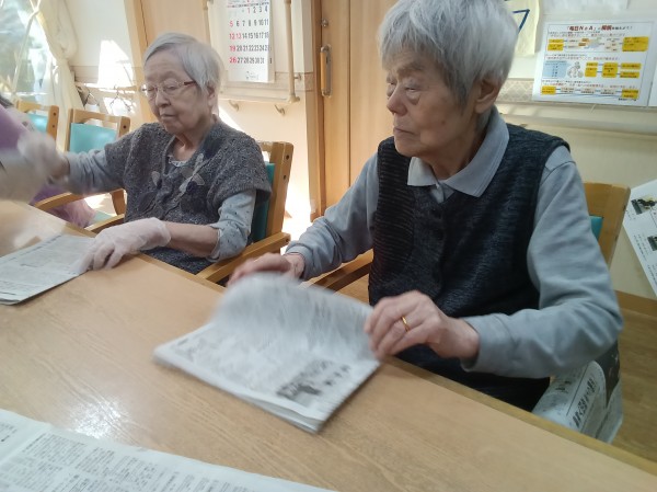 新聞たたみのお手伝いの様子です。