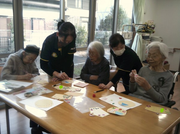 こんにちは! グループホームみんなの家・あきがせの介護ブログです! よろしくお願いいたします。 今日は絵馬作りを行っているご様子をお知らせいたします。 絵馬に願い事を書いていただいて壁に貼りました( ^ω^)・・・ 何って書いていいか迷われていた為お手伝いをしました!! 願い事が叶うといいですね(*^_^*)とお話しをされ喜ばれていました。