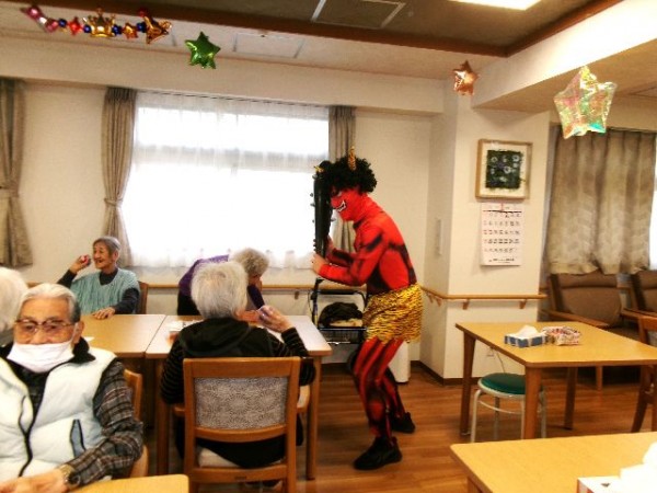 うおーーーーーーっと叫びながら鬼が入居者様たちを驚かしていますが