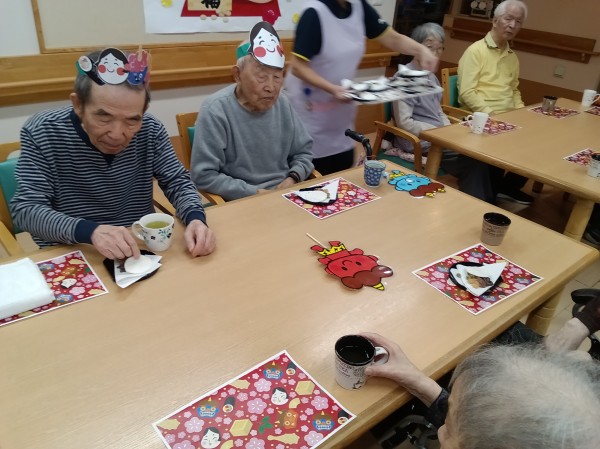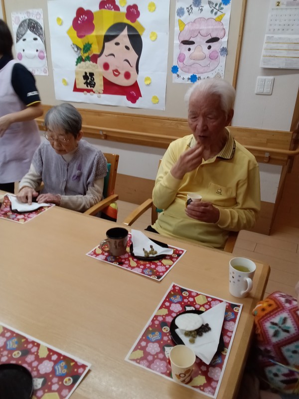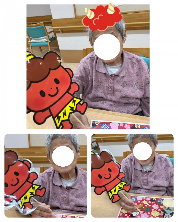 豆まき完了!!後もおやつ前にたくさんお話され笑い声が響き渡りとっても和やかな雰囲気です~^^v