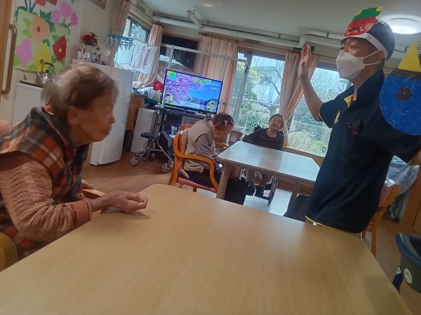 気持ちは、節分の日という事で対応し、豆まき、節分レクをおこなったそうじゃ!!