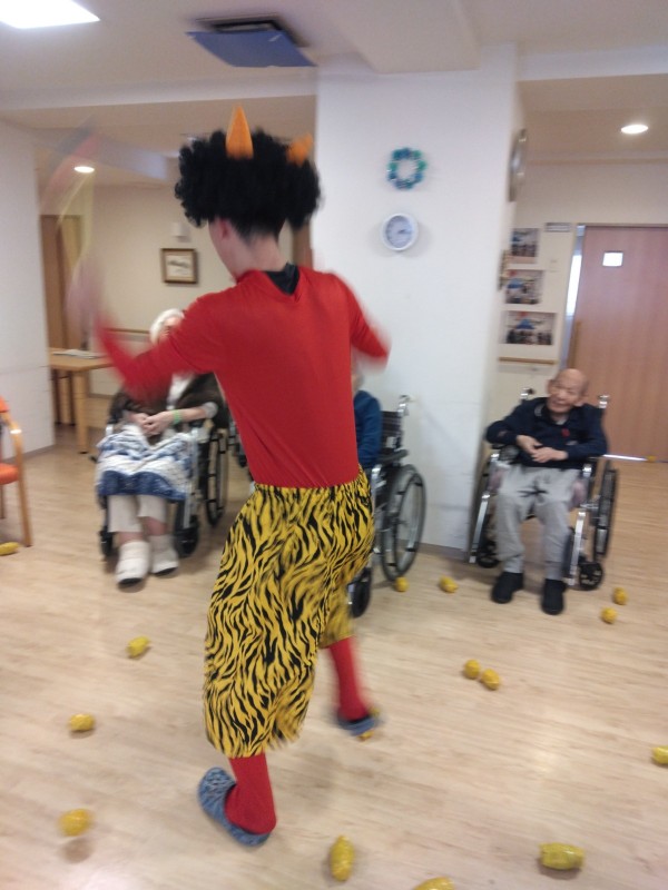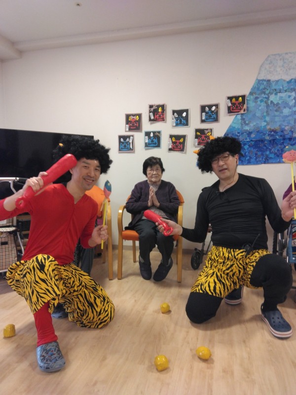 ご入居様が赤鬼・青鬼に豆を投げました。