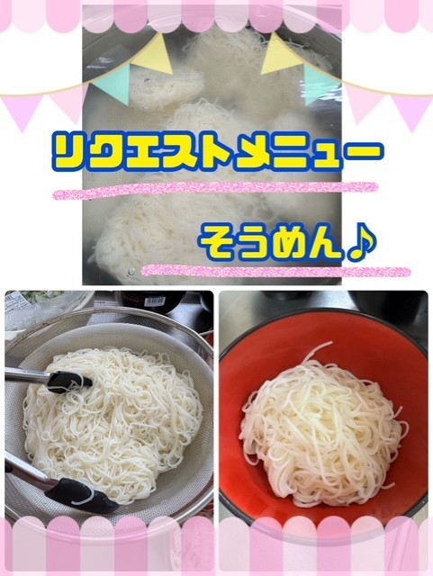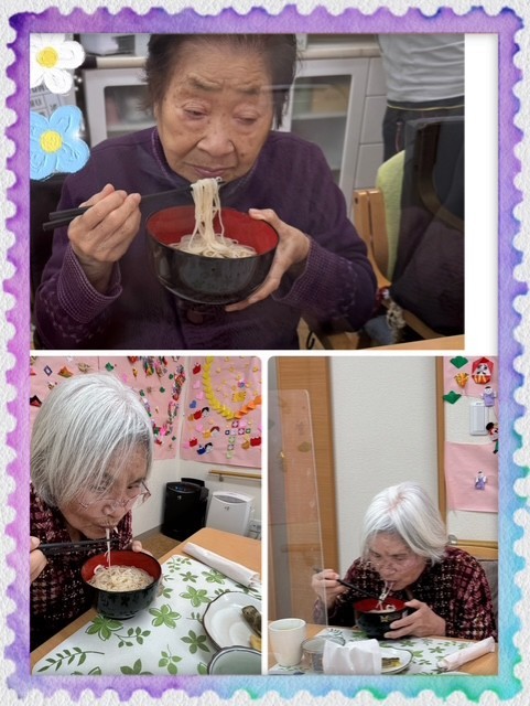 うどん・おそばときたら次はそうめんよねとご利用者様同士で会話をされていました。ここにきて初めてお昼ご飯として食べたのよと!!普段からかたくりの里相模台で何を食べたのかを連絡帳を見て確認されているとスタッフにお声掛けがありました!!