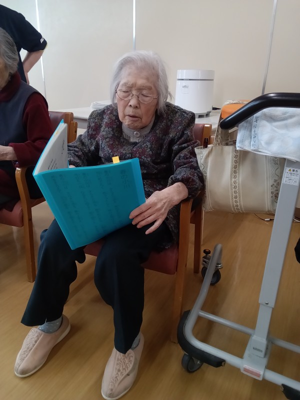 皆さんがフロアに集まって、準備運動も兼ねて歌をうたう様子をご報告します(^^♪