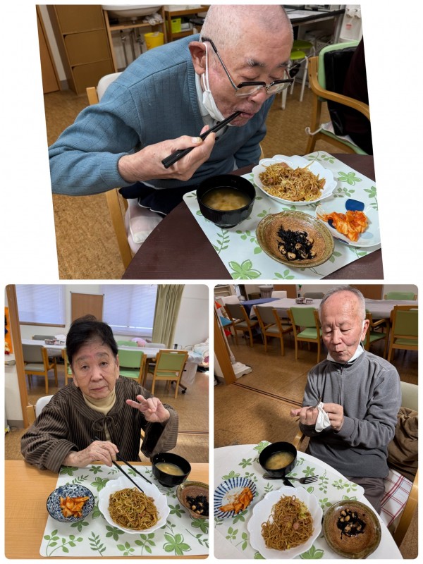 やっとお昼ご飯の時間と調理してる時もいい匂いがしてお腹すいちゃったのと今日はおかわりするねとスタッフにお声掛けがありました♪