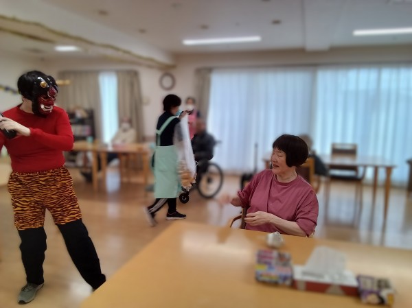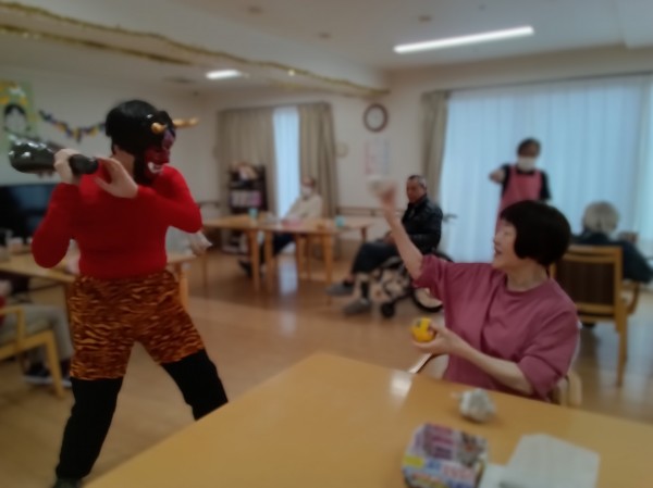 ★☆節分・鬼退治・豆まきレクリエーション赤鬼♪鈴木勝也ホーム長登場②階2025年令和7年✨